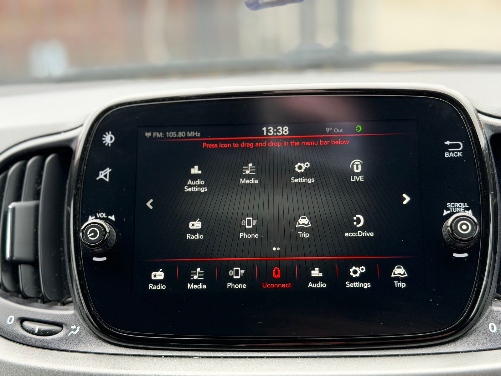 Adding to its allure, this Fiat 500 features optional extras like the striking Crossover Black exterior and the chic Sport Fabric interior in Black-White with a Black Ambience. These enhancements not only elevate its aesthetic appeal but also provide a comfy and stylish driving experience.